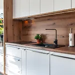 Dairede oturma alanı, uydu kanallı düz ekran televizyon, duman detektörleri ve elektrikli su ısıtıcısı, buzdolabı, fırın içeren tam donanımlı mutfak bulunmaktadır. Bu dairede kalan konuklar terasa erişebilir. Üstelik dairenin banyo odası ayrı tuvalet, duş ile donatılmıştır.